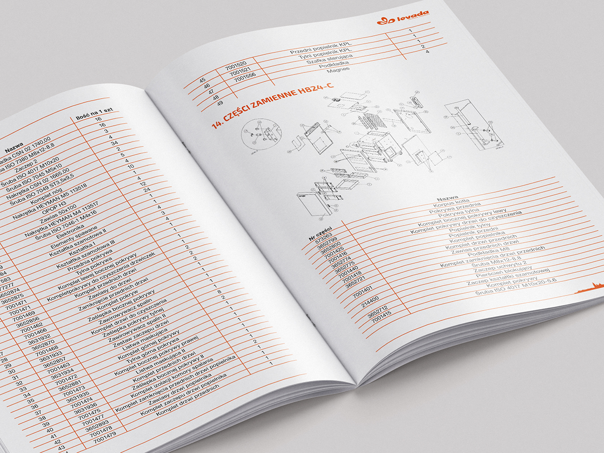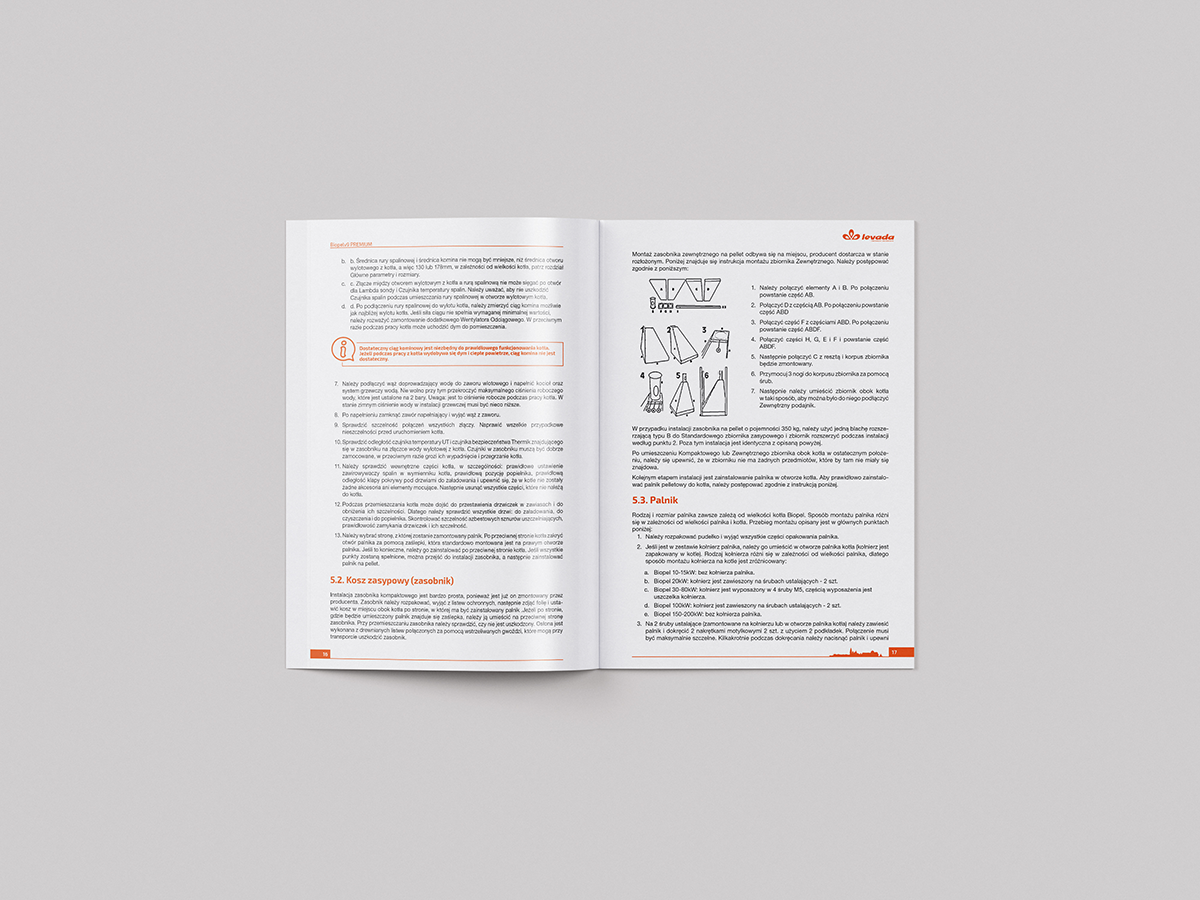 Skład instrukcji technicznych, użytkowania kotłów grzewczych dla firmy levada.